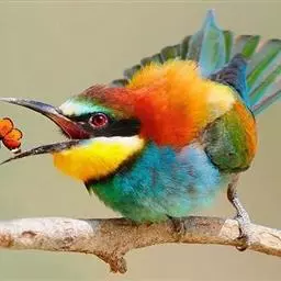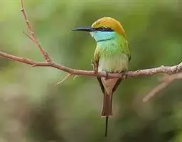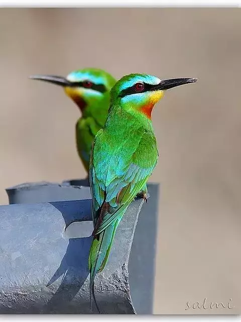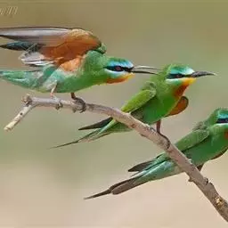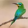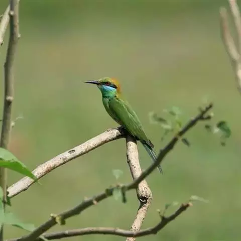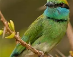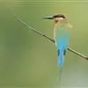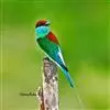 蓝颊蜂虎:是蜂虎科、蜂虎属的鸟类,共有2个亚种。体长27-33厘米,翼展46-49厘米,…