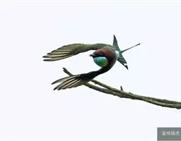 蓝喉蜂是蜂虎科蜂虎属鸟类。体长26-28厘米,嘴长而弯曲,有明显细长的中央尾羽。…