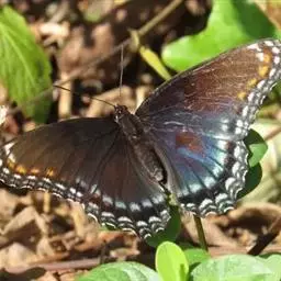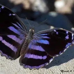 大紫蛱蝶为大型蝶种,翅展约86~110mm。翅紫黑色,有白色斑点点缀其中,雄蝶的翅具强烈紫色虹彩,…