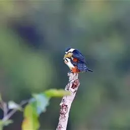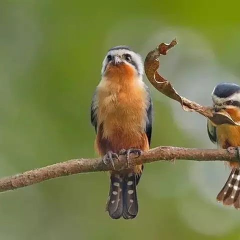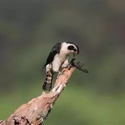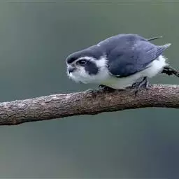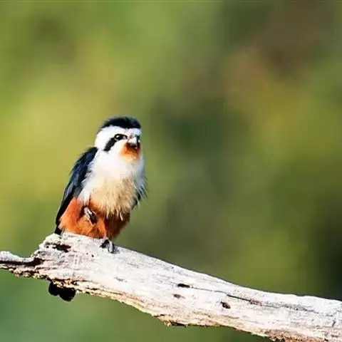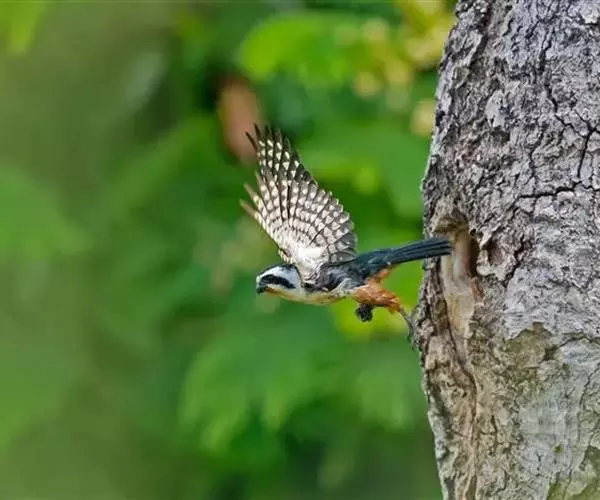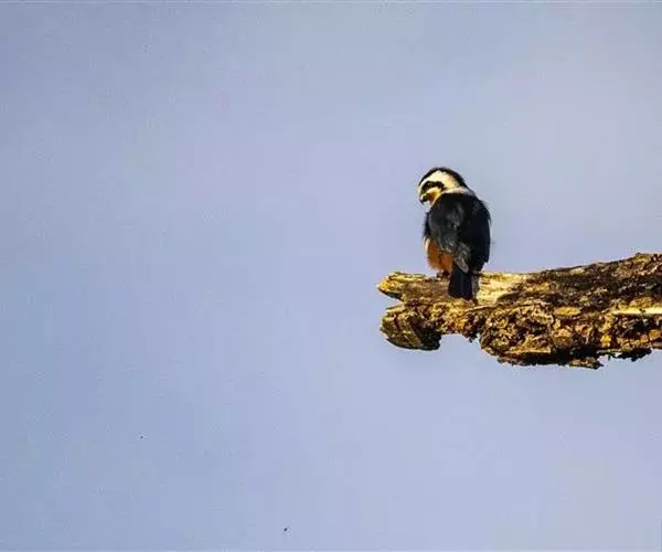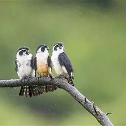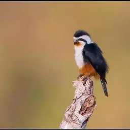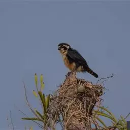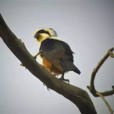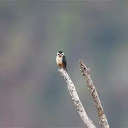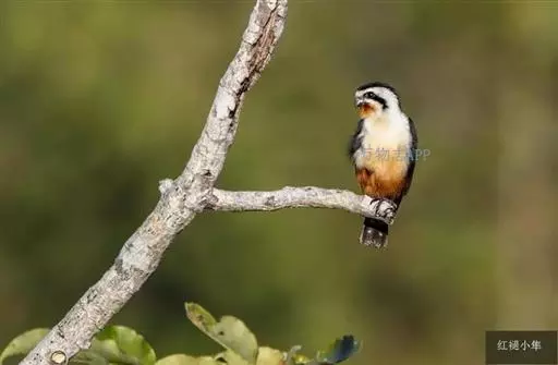 红腿小隼(学名:Microhierax caerulescens):属于隼形目隼科,几乎与麻雀一样大,是世界上最小的猛禽之一。有2个亚种,典型特征为前额为白色,眼睛上有一条宽阔的白色眉纹,往后经耳覆羽与上背的白色领圈相连,颊部和耳覆羽为白色,从眼睛前面开始有一条粗著的黑色贯眼纹经过眼睛斜向下到耳部。