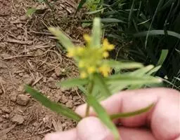 钻果大蒜芥(Sisymbrium officinale (L.) Scop.),十字花科大蒜芥属植物,印生有钻形角果而得名。一年或二年生草本,茎直立,上部分枝,叶下面有长而硬单毛,尤以叶脉上为多。花序呈伞房状,花瓣黄色,倒卵形至窄倒卵状楔形,长角果钻形,长角果与果梗均具短单毛。