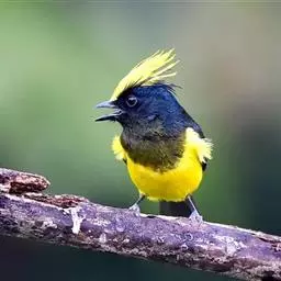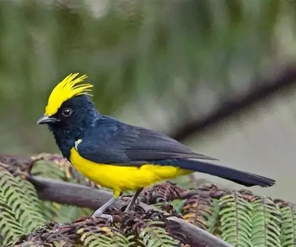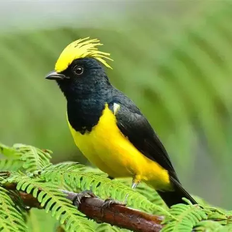 冕雀(学名:Melanochlora sultanea):共有4个亚种。体长20-21厘米,体重34-49克。具蓬松的黄色长型冠羽。雌鸟似雄鸟,但喉及胸深橄榄黄色,上体沾橄榄色。不会被误认的体大的黄色及黑色山雀。混群栖于原始林及次生林的林冠层,以大型昆虫为食。分布于印度次大陆,中国的西南地区、中南半岛和东南沿海地区。