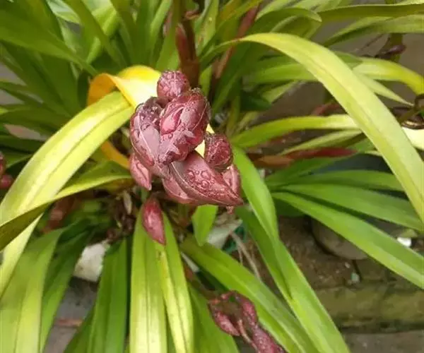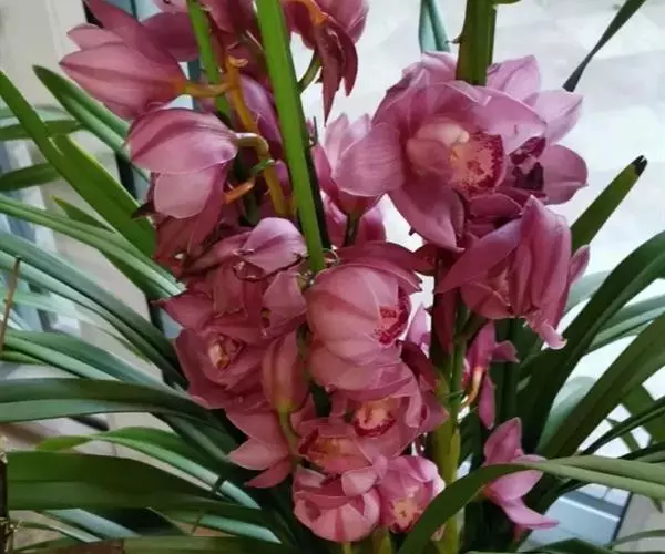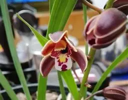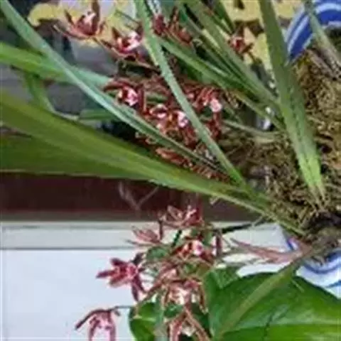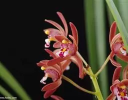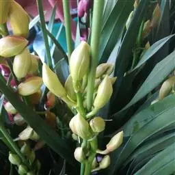 (6)大花蕙兰的花:开花期养分不足或高温或温差大于10℃易造成落花落蕾。深色花喜强光,弱光下容易出现垂叶现象。