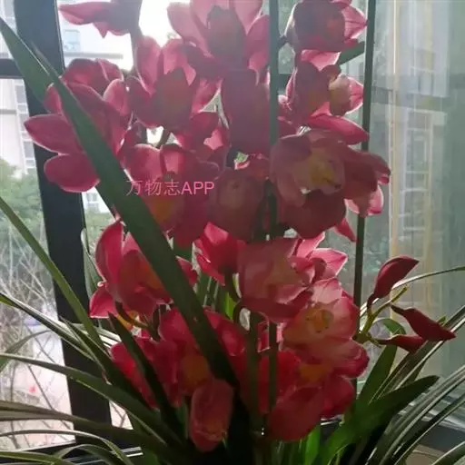 大花蕙兰又叫虎头兰、喜姆比兰和蝉兰。兰科、兰属植物。原产于印度、缅甸、泰国、越南和中国南部等地区的兰属(Cymbidium)中的一些附生性较强的大花种和主要以这些原种为亲本获得的人工杂交种。大花蕙兰,是对兰属中通过人工杂交培育出的、色泽艳丽、花朵硕大的品种的一个统称。兰属植物约48种,用来作杂交亲本的原生种有近20种,主要是大花的附生类以及少量的地生类。