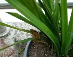 5.病虫害:(1)真菌性炭疽病:多发生于叶片顶端,病斑边缘黑褐色,中间灰白,多由高温、高湿、通风不良引起,病斑应及时剪除,并配合喷药。常用药剂有1000倍代森锰锌、1000倍可杀得。