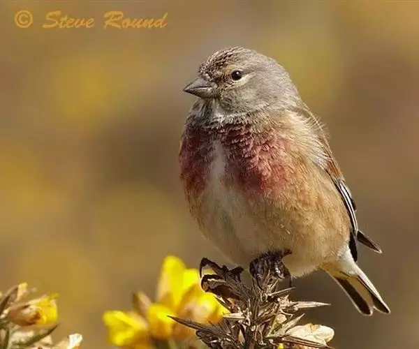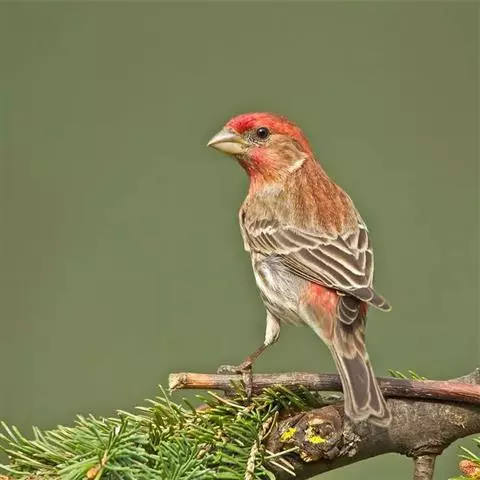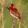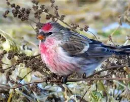 红腰朱雀:体长12-14厘米,小型鸟类。雄鸟前额和眉纹玫瑰粉红色,头顶和一宽的贯眼带深红褐色,背红…