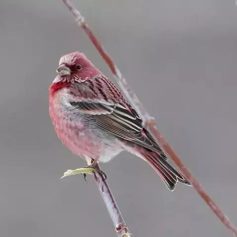 北朱雀,是燕雀科朱雀属鸟类。雄鸟额和头顶前部珠白色具窄的粉红色羽缘,…