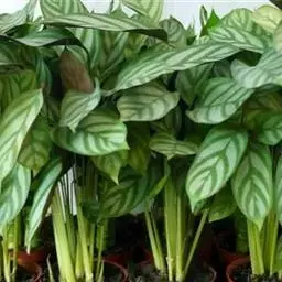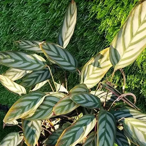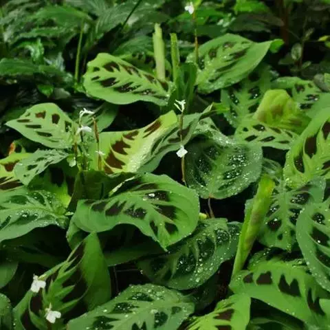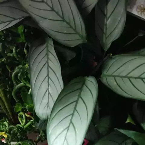 花叶竹芋:竹芋科,竹芋属匍匐状分枝草本植物,植株矮小,高可达40厘米,叶片长圆形、椭圆形至卵形,基…
