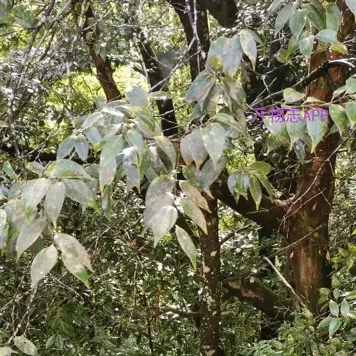 乔木,高达20米,胸径50厘米,大树的树皮纵深裂,厚达1厘米,块状剥落,小枝有皮孔甚多,枝、叶均无毛。叶革质,卵形,披针形或长椭圆形,长5-13厘米,宽1.5-5.5厘米,顶部长渐尖,常向一侧弯斜,基部一侧较短或甚偏斜,且稍沿叶柄下延,压干后常一侧叠褶,有时兼有两侧对称的叶,全缘或在顶部有少数浅裂齿,中脉在叶面至少下半段稍凸起,其余平坦,很少裂缝状浅凹陷,侧脉每边8-11条,甚纤细,当年生叶两面同色,二年生叶的叶背常带淡薄的银灰色;叶柄长7-10毫米,稀更长。