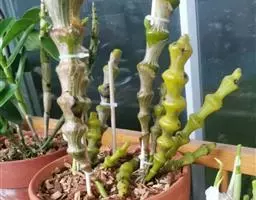 细叶石斛:茎直立,质地较硬,圆柱形或有时基部上方有数个节间膨大而形成纺锤形,通常分枝,具纵槽或条棱。…