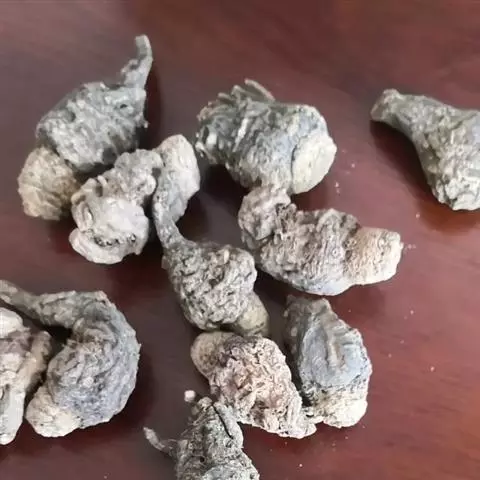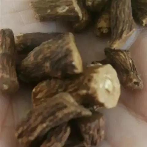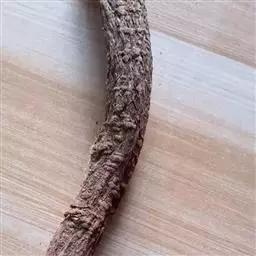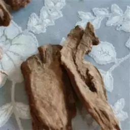 呈长圆柱形,枝条较粗壮,芦头较大;表面较光滑,颜色偏黑,纵纹明显;质地轻,似刚出窑的红砖,粉性差,少有裂开的隙缝;仅有苦味,甘味少或无,久嚼有棉絮感。