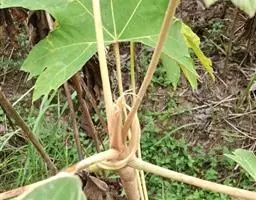 春 天土壤板结,通透性不好,一年生小苗在气候变化大时易发生在干湿土交界处的茎部。初呈淡黄褐色,严重时呈黄褐色斑腐烂,植株倒伏,并向四周扩散。