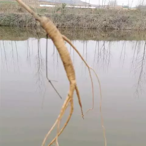 呈圆柱形,长纺锤形。长2~6cm,直径0.5~1.1cm,无芦头、须根及支根。未去皮者,表面土黄色或类白色;去皮者则为白色,带粉。