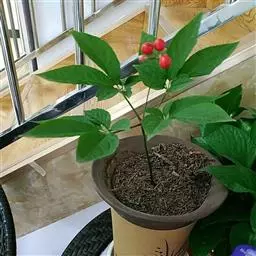 用做盆栽的参苗,要选择浆气足、芽苞饱满、无病虫害的壮苗。花盆的大小,可依参苗的大小而定,如是两年生参苗宜用盆口直径20~30cm、盆深25~35cm的花盆或木箱。