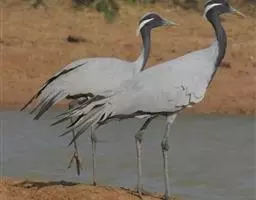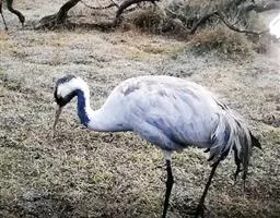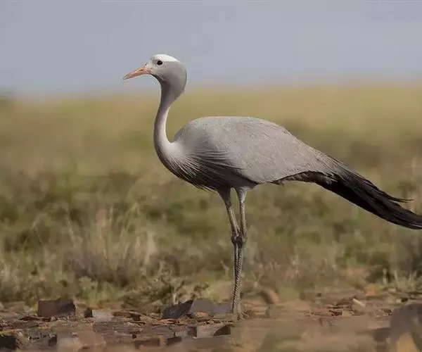 蓝鹤(Anthropoide sparadiseus)是非洲所拥有的6种鹤之一。它高雅而美丽的外貌给人留下深刻的印象。它有多层柔美而悠长的羽毛,由此构成特别长的“内翅”(三级飞翔),乍一看,会使人以为它有很长的尾翼,其实不然。大多数鹤类在头部和脸部都会有艳丽的装饰,最典型的就是头部有红色羽毛或者红色的裸皮,而全身羽毛球则纯黑或纯灰、纯白,偶尔会间以明显的条纹,或配有精美的鸟冠。可是在这方面,蓝鹤却非常朴实无华。