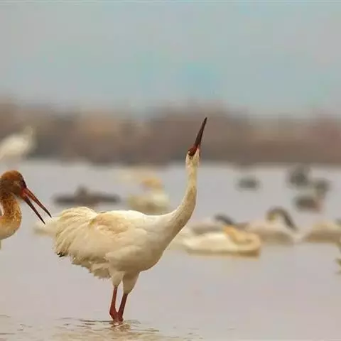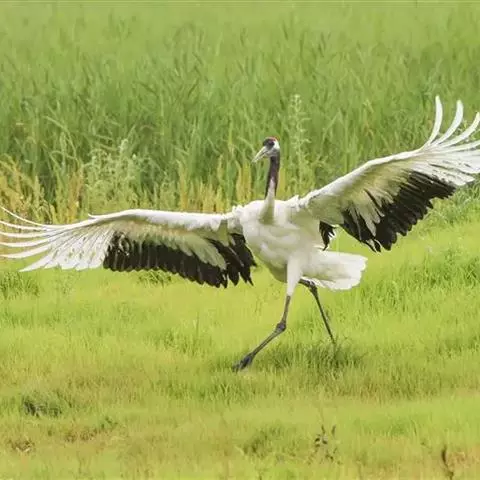 丹顶鹤:是鹤科、鹤属的一种大型涉禽,体长120-160厘米。颈、脚较长,通体大多白色,头顶鲜红色,…