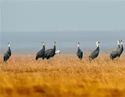 所幸的是,蓝鹤的厄运还不至于差到“绝望”的境地。如今它们的状况还是有好有坏,参差不齐的。境况最差的是那些原本分布在辽阔的草原生物群落区的蓝鹤。那里曾经是它们可靠的“根据地”。可如今在这类地区,90%的蓝鹤已经在过去的20年中逐渐消失了。只剩下大约9000只还稀稀拉拉地“坚守”在这里。起先,人们对这一严重情况并无觉察,等到发现时已经“悔之晚矣”。导致这悲剧发生的主要原因是“中毒死亡”。