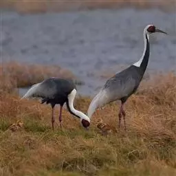 白枕鹤体形与丹顶鹤相似,略小于丹顶鹤,而大于白头鹤。上体为石板灰色。尾羽为暗灰色,…