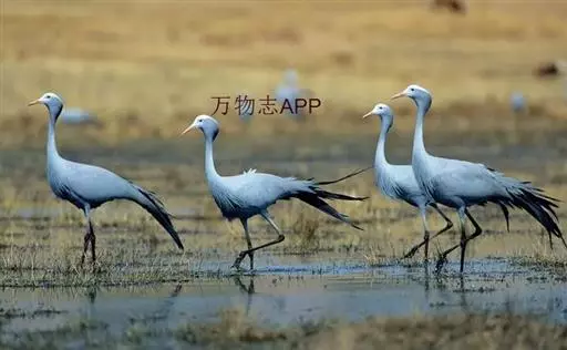 蓝鹤又名蓝蓑羽鹤。它们通常在地上生活,高约100-120厘米,重4-6.2千克。它们身体大部分被羽呈淡蓝灰色,有白冠,喙呈粉红色,双翼羽毛呈深灰色监很长。