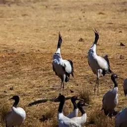 黑颈鹤:是鹤科、鹤属的大型涉禽,体长110-120厘米,体重4-6千克。颈、脚甚长,通体羽毛灰白色,…
