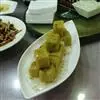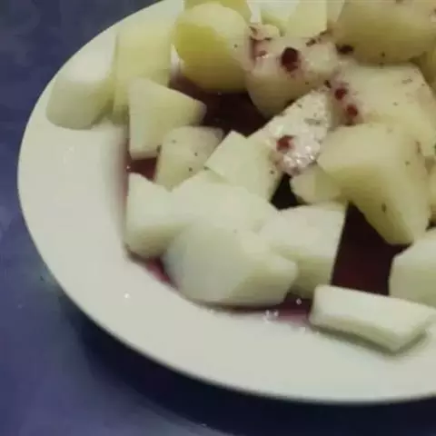 1.将山药刮去外皮,用清水洗净。将鸭梨、苹果剥去皮,切开,除去核,然后切成小叮将金糕瓜仁瓜条青梅均切成2分见方的小叮用水将葡萄干洗净,横切成两半。