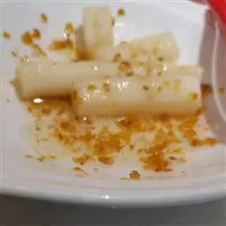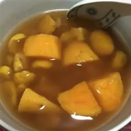 4、将熬好的糖汁淋在切好的山药上面,放入碗内用高压锅压15分钟。