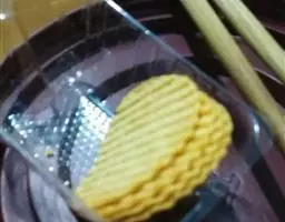 2、锅中放入足够多的油(能没过山药),烧至7成热时,放入山药段用中火炸至稍稍变黄捞出,沥干油。