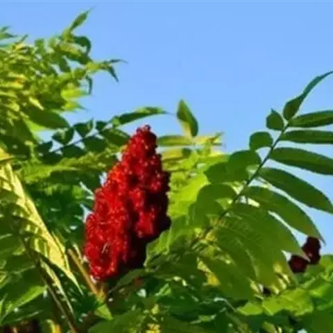火炬树是漆树科盐麸木属落叶灌木或小乔木;株高,树形不整齐;小枝粗壮,红褐色,密生绒毛;叶轴无翅,…