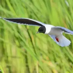 红嘴鸥(学名:Larus ridibundus):俗称“水鸽子”,体形和毛色都与鸽子相似,体长37-43厘米,翼展94-105厘米,体重225-350克,寿命32年。嘴和脚皆呈红色,身体大部分的羽毛是白色,尾羽黑色。脚和趾赤红色,冬时转为橙黄色;爪黑色。