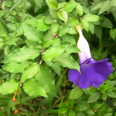 爵床科山牵牛属多年生常绿灌木,植株高2-3米,分枝多,枝条较柔软,幼茎四棱形,绿色至深褐色。蓝吊钟…