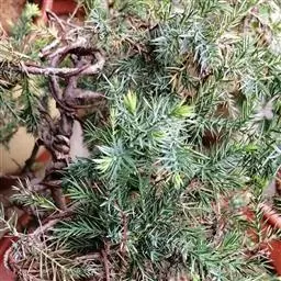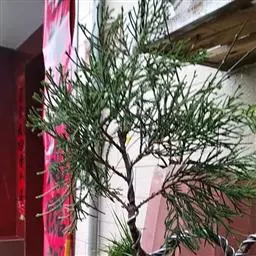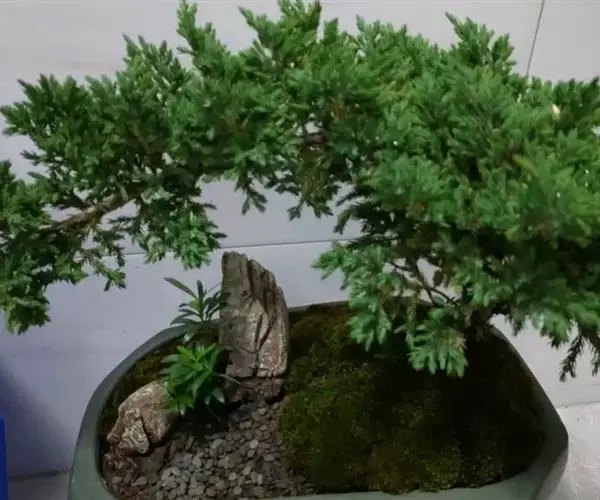 铺地柏是一种矮小的柏科圆柏属灌木,原生于日本南部。系柏科常绿匍匐小灌木,高达75厘米,冠幅逾2米。枝干贴近地面伸展,褐色,小枝密生。枝梢及小枝向上斜展。叶均为刺形叶,先端尖锐,3叶交叉互轮生,条状披针形,先端渐尖成角质锐尖头,长6-8毫米,上面凹,表面有2条白色气孔带,下面基部有二个白粉气孔,气孔带常在上部汇合,绿色中脉仅下部明显,不达叶之先端,下面凸起,蓝绿色,沿中脉有细纵槽。叶基下延生长;球果近球形,被白粉,成熟时黑色,径8-9毫米,有2-3粒种子;种子长约4毫米,有棱脊。匍匐枝悬垂倒挂,古雅别致,是制作悬崖式盆景的良好材料。