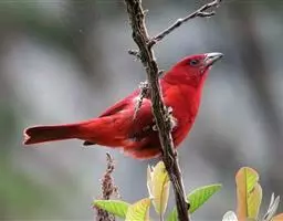 酒红朱雀小型鸟类,体长13~15厘米。雄鸟通体深红色,头部深朱红或棕红色,下背和腰玫瑰红色,…