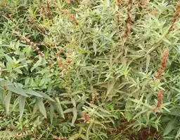 灌木或亚灌木状,高30-70厘米,直立,粗糙,被粗毛及短小硬毛;分枝细,密被短柔毛。叶薄革质,披针形或卵状披针形,稀矩圆形,顶部的线状披针形,长2-4厘米,宽5-15毫米,顶端长渐尖,基部圆形至阔楔形,下延至叶柄,幼时两面被贴伏短粗毛,后渐脱落而粗糙,侧脉约4对,在上面凹下,在下面明显凸起,叶柄极短,长约1毫米。