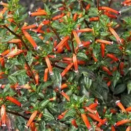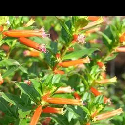萼距花(Cuphea hookeriana Walp.)千屈菜科、萼距花属灌木或亚灌木状,高30-70厘米,直立,粗糙,被粗毛及短小硬毛,分枝细,密被短柔毛。叶薄革质,披针形或卵状披针形,稀矩圆形,顶部的线状披针形,顶端长渐尖,基部圆形至阔楔形,下延至叶柄,幼时两面被贴伏短粗毛,后渐脱落而粗糙,矩圆形,深紫色,波状,具爪,其余4枚极小,锥形,有时消失;突出萼筒之外,花丝被绒毛;子房矩圆形。