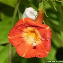 橙红茑萝是旋花科虎掌藤属的一年生草本,又称圆叶茑萝,茎缠绕,平滑,无毛;叶心形,骤尖,全缘,…