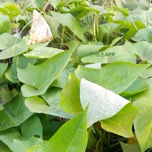 番薯(学名:Ipomoea batatas (L.) Lam.)别称甘储、甘薯、朱薯、金薯、番茹、红山药、玉枕薯、山芋、地瓜、山药、甜薯、红薯、红苕、白薯、阿鹅、萌番薯。一年生草本植物,地下部分具圆形、椭圆形或纺锤形的块根,茎平卧或上升,偶有缠绕,多分枝,叶片形状、颜色常因品种不同而异,通常为宽卵形,叶柄长短不一,聚伞花序腋生,蒴果卵形或扁圆形,种子1-4粒,通常2粒,无毛。