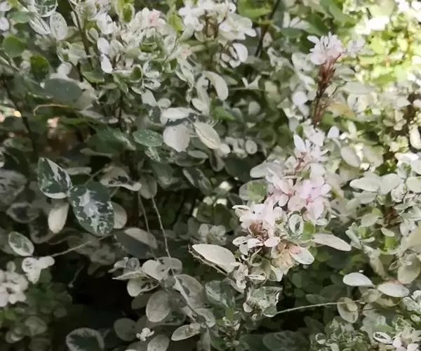银姬小蜡(Ligustrum sinense 'Variegatum')别称:花叶女贞,是木犀科、女贞属常绿小乔木,分布于日本、朝鲜半岛、中国辽宁及其以南广大地区。风土适应性极强。为阳性植物,喜强光,极为耐寒、耐旱、耐瘠薄、耐修剪。耐移植,休眠期和雨季可裸根移栽,成活容易。繁殖可采用常规的扦插法,于秋天或早春进行成活率较高。已引种到辽宁沈阳、河北石家庄、陕西西安、上海及云南等地。