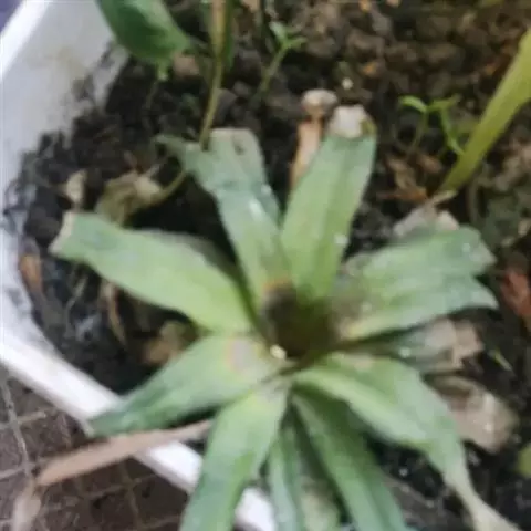 斯里兰卡凤梨 凋萎病:植株发病后,叶片变软下垂,叶色淡绿至红色,基部腐烂,最后全株枯死。此病是粉介壳虫为害所引起。