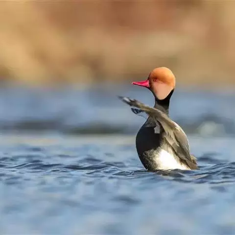 赤嘴潜鸭俗称大红头,是大型鸭类,个体比绿头鸭小,体长45-55厘米,体重1千克左右。雄鸟头浓栗色,…