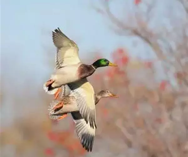 绿头野鸭的腿脚橙黄色,爪黑。故又称之为大红腿鸭。