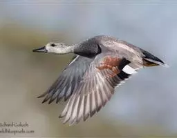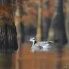 赤膀鸭:上体多暗灰褐色,杂以波状白纹,胸褐色,有新月状白纹,腹灰白,翼镜黑白两色。