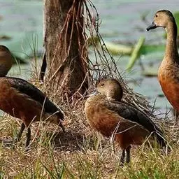 栗树鸭体长37-42厘米,体重400-600克,是中等体型的红褐色鸭。头顶深褐,头及颈皮黄色,…