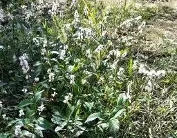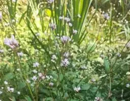 伞房状聚伞花序,顶生,苞片长圆形,薄膜质,花梗长4-5毫米,顶部具关节,无毛,比苞片长;花被5深裂,稀4深裂,白色或淡黄色,被片宽倒卵形,长4-5毫米,不相等;雄蕊6-8, 花药紫色;花柱3, 柱头头状。