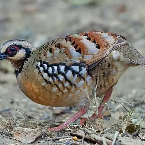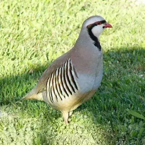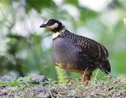 褐胸山鹧鸪:雄鸟体长22厘米,体重310克;雌鸟体长23厘米,体重220-275克。前额皮黄白色,…