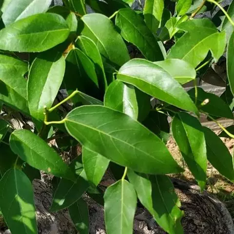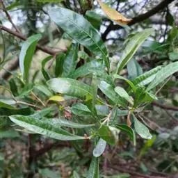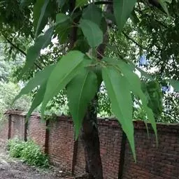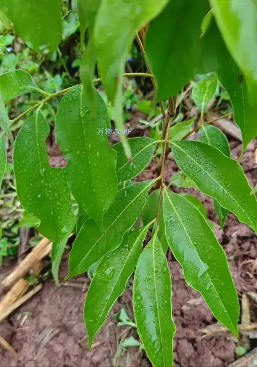 叶连柄长10-25厘米或过之;小叶2或3对,较少4对,薄革质或革质,披针形或卵状披针形,有时长椭圆状披针形,长6-15厘米,宽2-4厘米,顶端骤尖或尾状短渐尖,全缘,腹面深绿色,有光泽,背面粉绿色,两面无毛;侧脉常纤细,在腹面不很明显,在背面明显或稍凸起;小叶柄长7-8毫米。