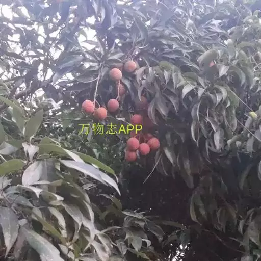 荔枝(学名:Litchi chinensis Sonn.)无患子科,荔枝属常绿乔木,高约10米。果皮有鳞斑状突起,鲜红,紫红。成熟时至鲜红色;种子全部被肉质假种皮包裹。花期春季,果期夏季。果肉产鲜时半透明凝脂状,味香美,但不耐储藏。