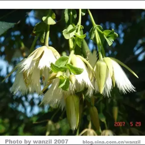 总状花序生于枝顶叶腋内,长4-7厘米,有花5-14朵,花序轴被褐色柔毛;花柄长8-10毫米,,花长1.5厘米,直径1-2厘米;花芽披针形,长1.2厘米;萼片6片,狭窄披针形,长1.4厘米,宽1.5-2毫米,外面被褐色柔毛;花瓣倒披针形,长1.3厘米,内外两面被银灰色长毛,先端7-8裂,裂片长3-4毫米;雄蕊45-50枚,长1厘米,花丝长2毫米,花药长4毫米,顶端有长达3-4毫米的芒刺;花盘5裂,不明显分开,有浅裂;子房被毛,3室,花柱长9毫米,有毛。核果椭圆形,长3-3.5厘米,有褐色茸毛。花期8-9月,果实在冬季成熟。