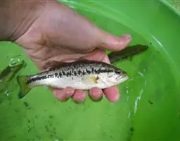 体侧上部有红、黄杂斑,下腹部较白,背有浅褐 色斑。背鳍、胸鳍透明有红色斑点,臀鳍透明无斑,尾鳍上、下叶黄色透明,有若干横斑。体呈筒状延长,下颔略前突。背鳍位于胸鳍基底上方略后,臀鳍上方有一脂鳍。背鳍软条11至13枚;臀鳍软条8至10枚。侧线鳞片数目约在56至61枚之间,以59枚居多。体长可达40厘米。