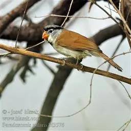 文须雀,别称髭雀、文须山雀,属雀形目、鹆鸟科、画眉亚科。眼先及髭纹黑色,头顶暗灰,…