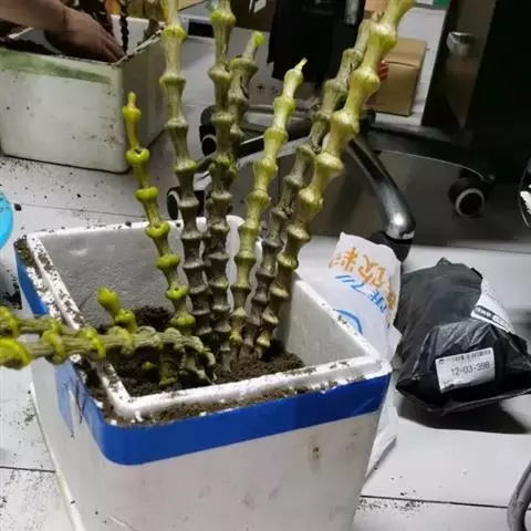 方法一 准备好兰盆及植料后,将兰株倒拿(根在上,叶在下)放于水龙头下以慢水冲洗,但水压切忌过强,以免伤兰根及叶子。用拇指和食指抓住兰头,小指抵住盆缘,用竹筷将根固定,当放入盆内时,尽量不要让根接触到盆壁。将豆粒大的混合石砾倒入盆底至三分之一处。然后倒入中粒植料至五分之四处,填实和尽量不要留下空间。将竹筷拔出,并摇实盆中植料。填实植料后,再用大粒植料埴入至距盆缘1.5厘米处。最后再倒入豆粒大植料,以将假鳞茎全部埋入土中为度,然后充分摇实。用压土工具轻压植料,并将表面弄平。种植完毕后,植料在盆中以中央稍高为好。